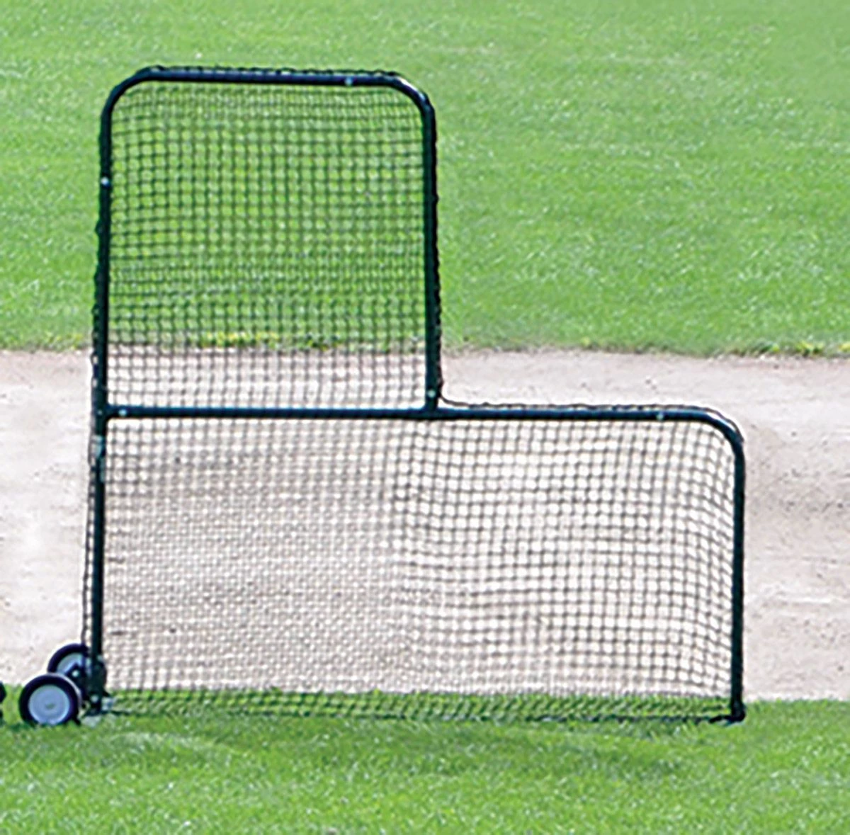 TheΒ Jaypro Collegiate L-Screen pitcher’s protector is constructed of heavyΒ gaugeΒ 1-5/8″ O.D. galvanized steel tubing with a durable, attractive green powder coated finish. The heavy duty 2″ square galvanized steel legs provide excellent stability. The 8″ wheels (included) allow for easy transport and storage.This L-screen also features a durable black, weatherproof #42 knotless nylon double-sided slip-on net and two 8″D wheels that make transporting the unit easy. The versatile L-shape designΒ accommodatesΒ left or right-hand pitchers and works with pitching machines or live arm delivery.