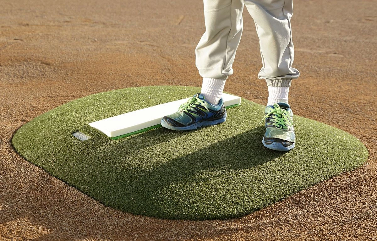 The Portolite Economy Stride-Off portable pitching mound is ideal for youth players ages 8-14. This green colored Stride-Off mound is designed with a lightweight, polypropylene foam core material, weighing 23lbs. This pitching mound can be used in youth league games, pitching clinics, mobile bullpens or as a tool for backyard practice.