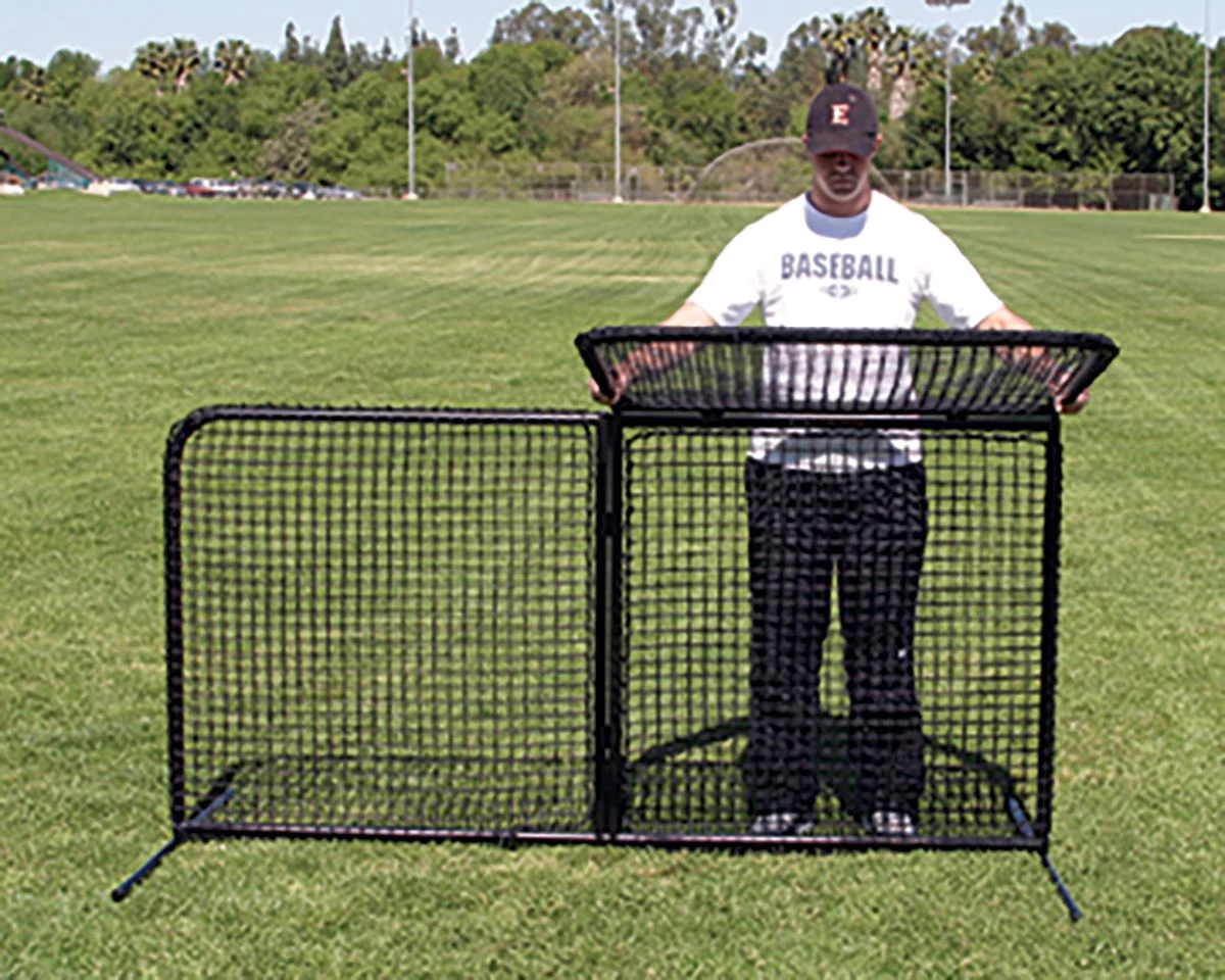 This fully portable L pitching screen measures 7’W x 7’H when assembled and features a two-sided, weather treated net and a durable steel frame. The screen collapses to a size of 41”L x 42’W’ x 6″H, for easy transport.