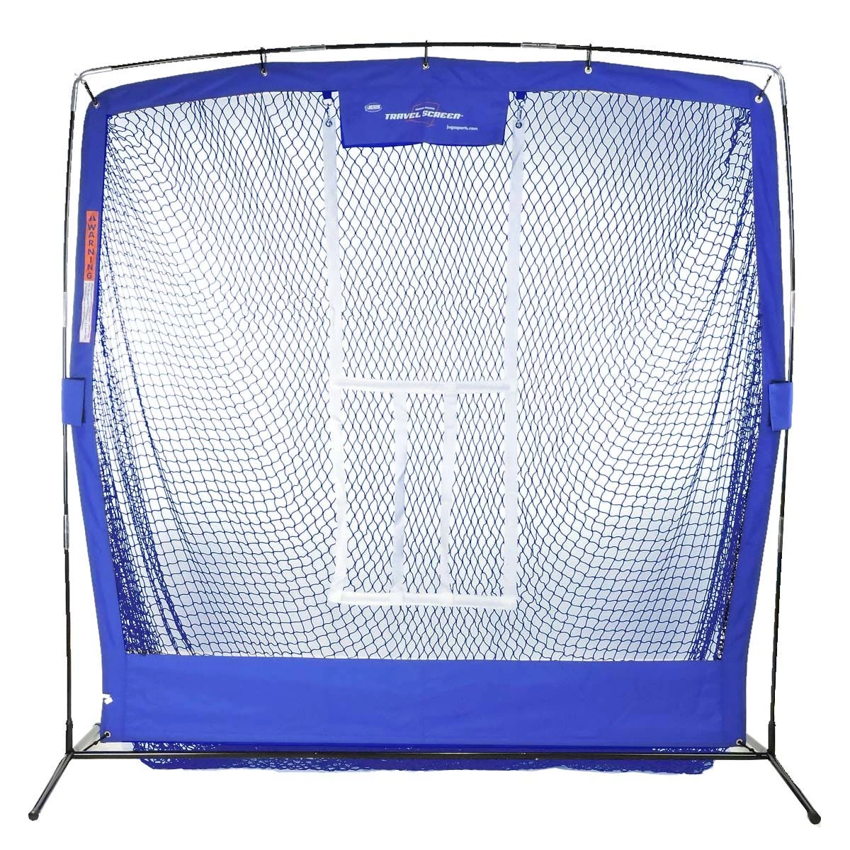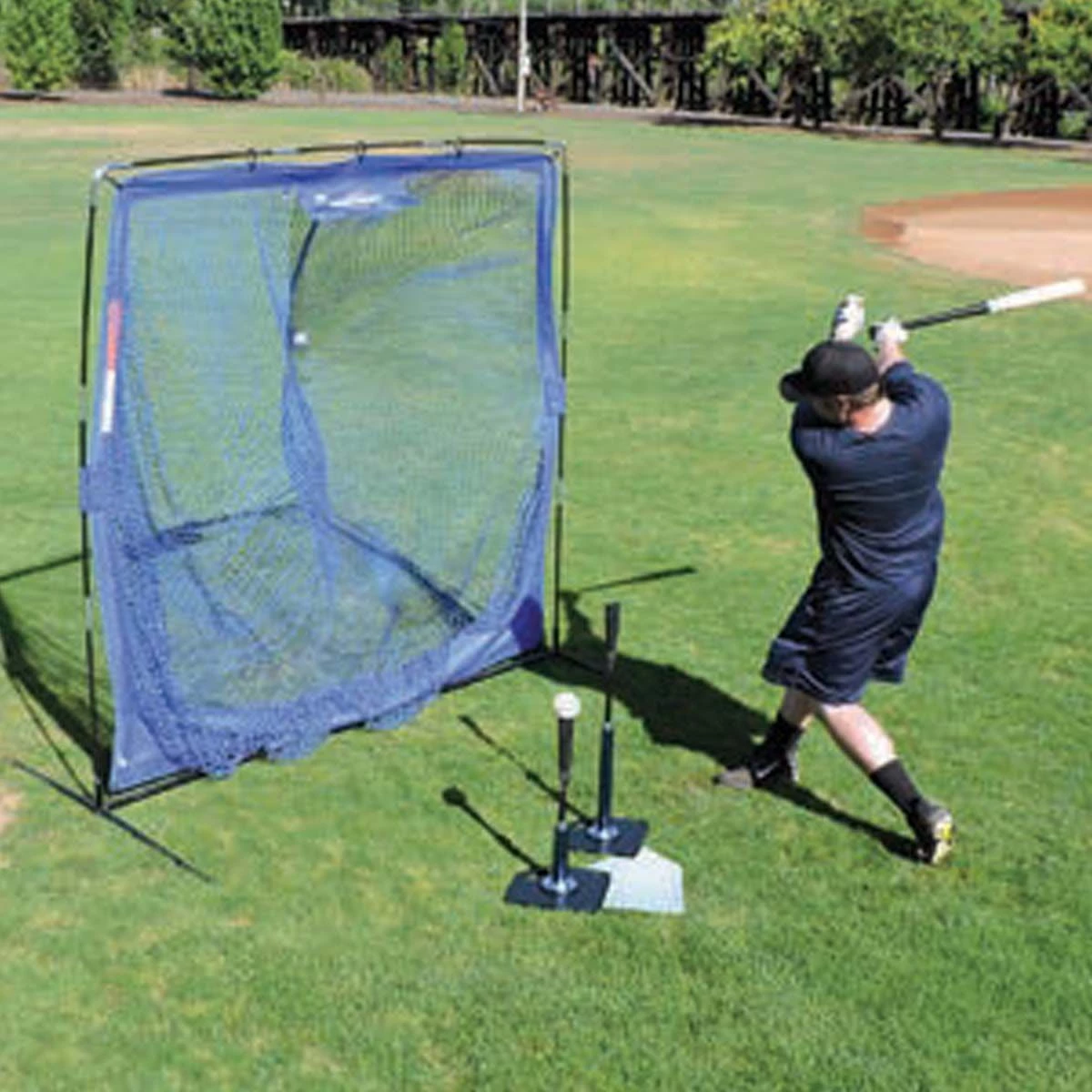 Take your cuts anywhere with the portable Jugs baseball T hitting station package. This comprehensive batting practice package includes a 6.5′ x 6.5′ travel screen, the Jugs T batting tee (#A32-080), the Jugs Short T batting tee (#A32-082), 1 dozen Pearlยฎ baseballs and a throw-down home plate for simulating a realistic batting experience. The practice travel screen’s frame is built with durable 5/8″ fiberglass bungee poles with a sturdy 1″ steel tube base that won’t tip over in windy conditions. The screen features a white-lined strike zone and is equipped with a collection area that holds hit balls. The travel screen ships complete with a 30″ nylon travel bag for easy transport. The Short T batting tee can be easily set at heights from 16โ to 23,โ allowing hitters to work on the pitch at the bottom of the strike zone. The Jugs T batting tee features a quick adjustment range of 24โ to 45โ to simulate top of the zone pitch locations. Convenient cut-out handles in the base of the tees allow for quick transport.ย