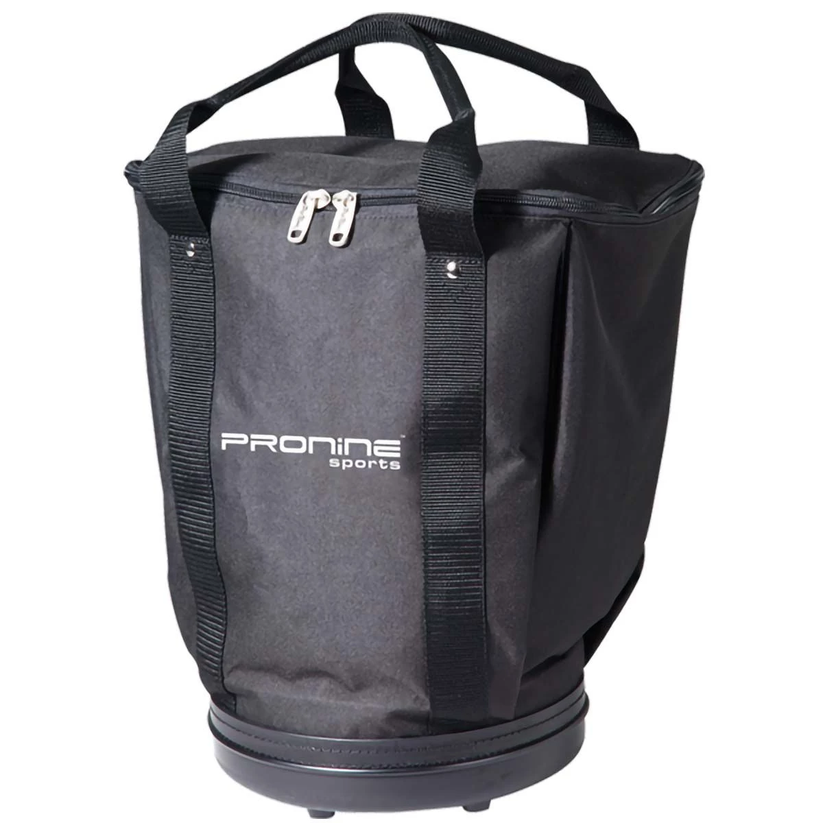 The Pro Nine baseball / softball ball bag has a sturdy base with a zippered top and can hold 72 baseballs or 30 softballs.