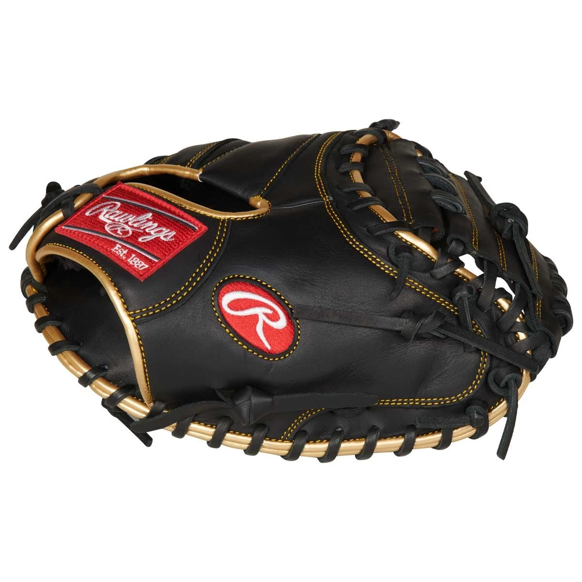 The Rawlings 32.5β R9 catcherβs mitt is an excellent option for catchers looking for a comfortable and game-ready mitt. The soft, durable all-leather shell features pro style patterns and a bolstered base design that prevents against sting thanks to the reinforced padding in the palm area. In addition, the thumb loop and finger back liners have extra padding for a soft and comfortable feel. With a 80% break in from the factory, this glove provides a custom and game-ready fit every time you step behind the plate.