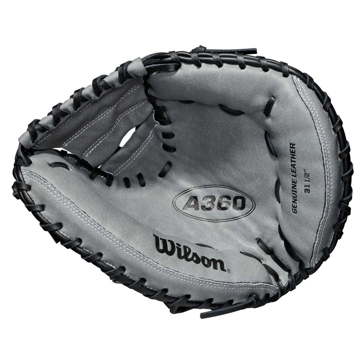 The Wilson WBW100190315 A360 Youth Baseball Catcher’s Mitt (31.5″ pattern) is the perfect introduction to the catcher position for the young player. Its smaller 31.5″ size allows young catchers to have quicker hands behind the plate.