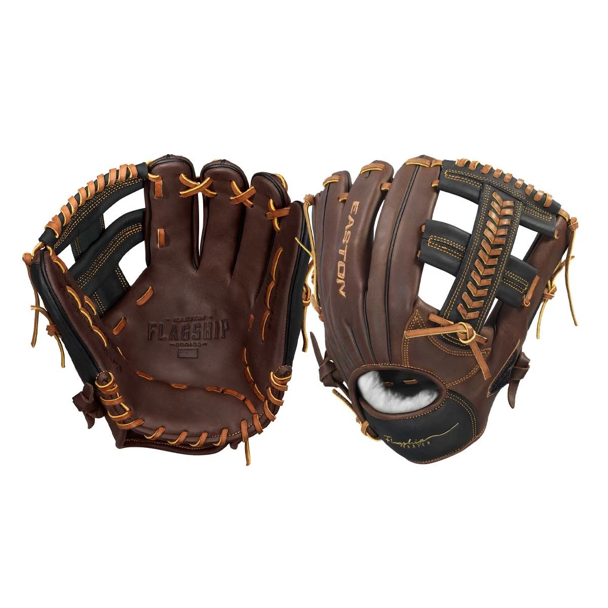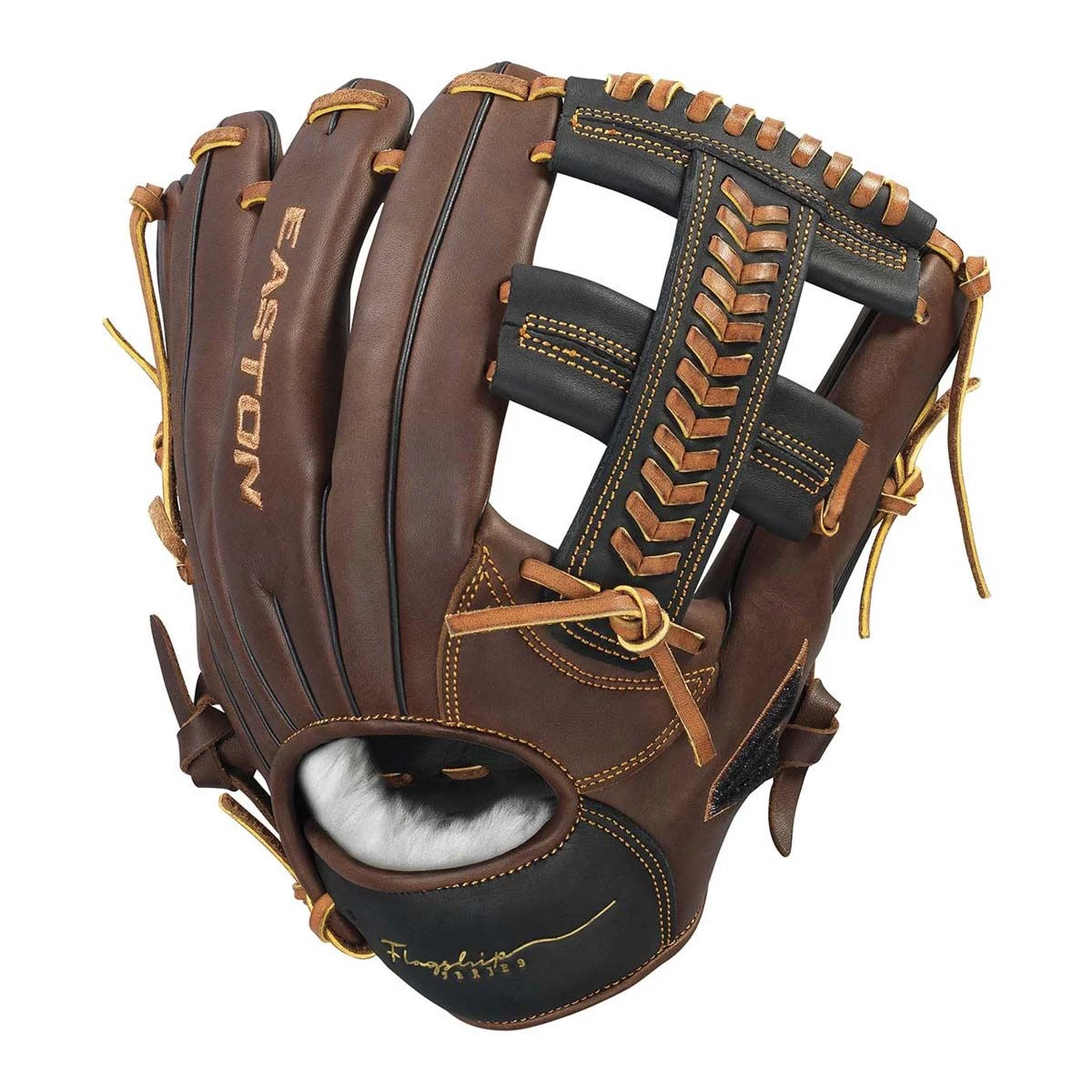 The Easton FS-D32B 11.75β Flagship Series baseball glove features a deep infield pattern and a braided single post web design for right hand throw infielders. This glove is crafted out of a Diamond Pro Steer leather shell thatβll give you a pro-level fit and feel. The classic cowhide palm lining and finger stalls provides ultimate comfort that lasts the whole game. Eastonβs Flagship Series gloves are made to last with their professional-grade USA-tanned rawhide lace, tested to a tensile strength of 100 lbs. with steer hide binding for increased durability. With comfort in mind, the pinkie loop has been repositioned to allow for two fingers in the pinkie stall as well as a luxurious sheep wool shearling fur in the wrist liner.