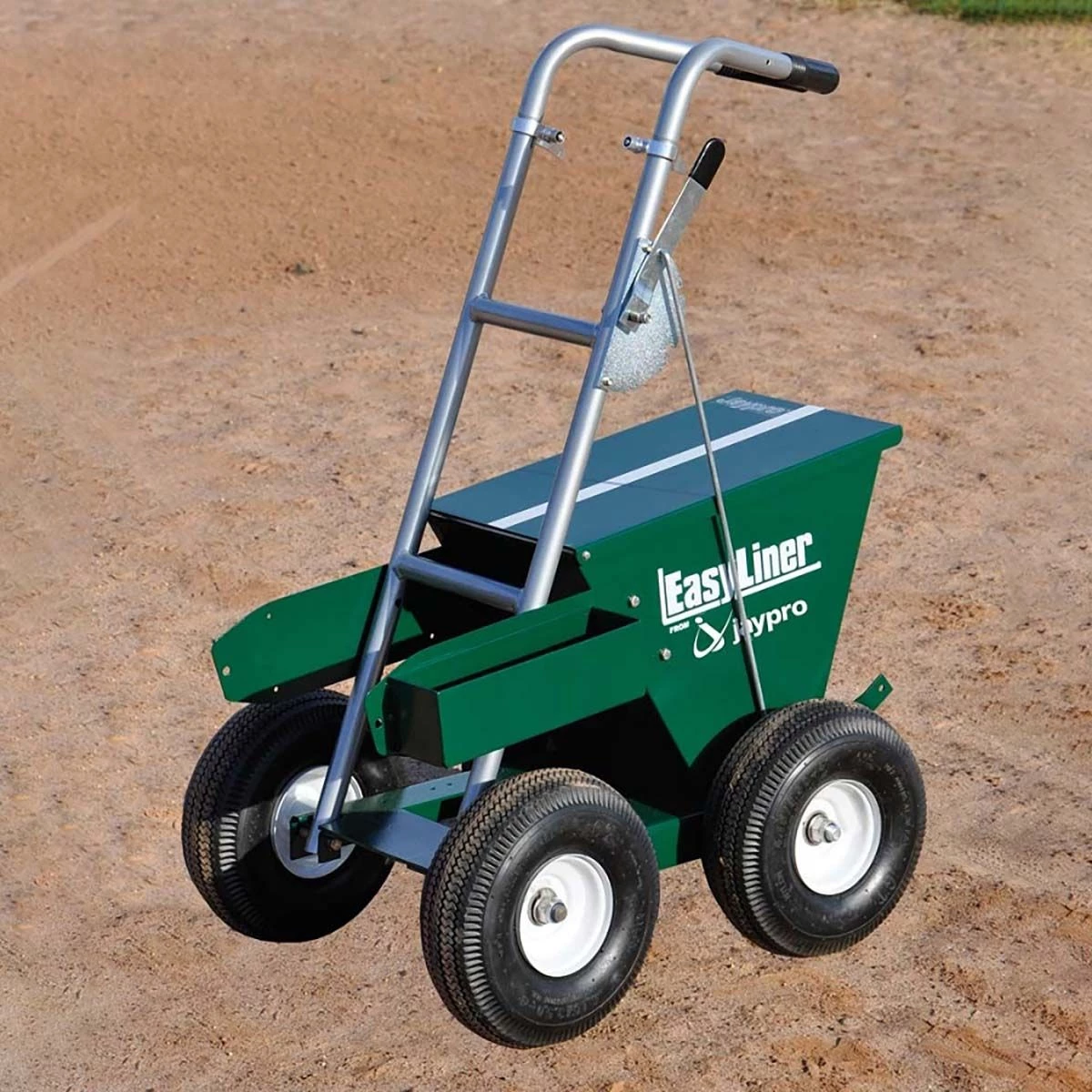 The Heavy Duty EasyLiner has an 18-gauge steel plate construction with precision control for 2″ or 4″ lines. This dry line field marker also has handle mounted control levers for instant on/off and over-sized foam-rubber hand grips for comfort. The steel plate frame increases durability andΒ longevity and the 1/2″ steel axle bushings and drive shafts make for easy mobility.