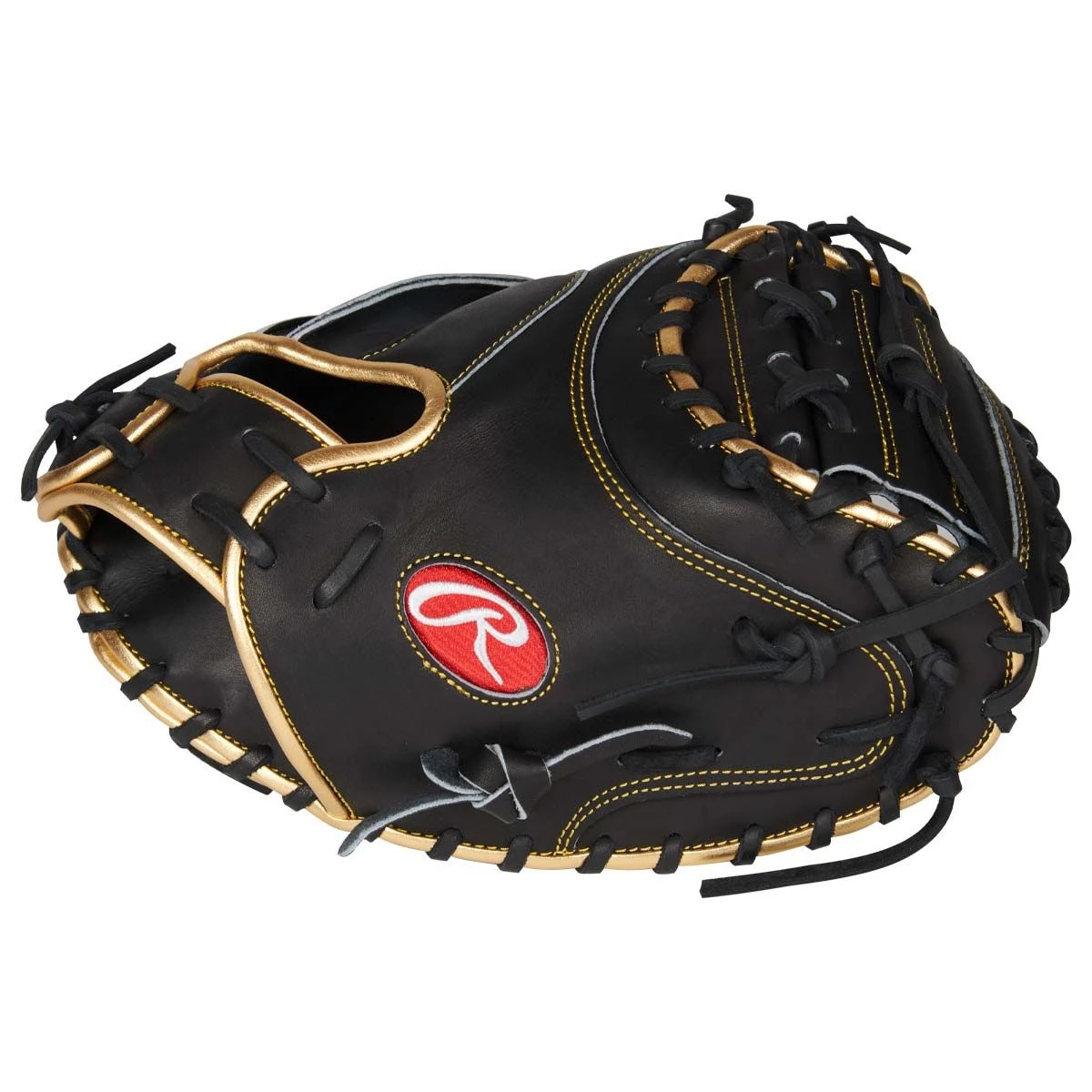 The Rawlings 33.5″ Heart of the Hide PROGS24 professional pattern catcher’s mitt is the same glove model that has performed brilliantly for All-Star catcher Gary Sanchez. The mitt’s top grade USA steer-hide leather construction, deer tanned cowhide palm lining, soft full-grain finger back linings, and padded thumb sleeve provide more durability, comfort, and a better feel than any other catcher’s mitt. The thermoformed hand opening will keep your hand cool and ventilated all game. The glove has a solid 1-piece web design and will break in exactly to your liking, allowing you to handle the hardest fastballs along with the trickiest breaking balls. This 33.5″ catcher’s mitt will give you the very best protection, durability, and performance behind the plate.Β