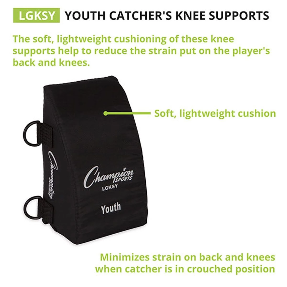 The Champion catcher’s knee support is for youth, 5’7″ and under. These catcher’s knee supports will keep the player comfortable while in the crouched position to help reduce injury to the knee.
