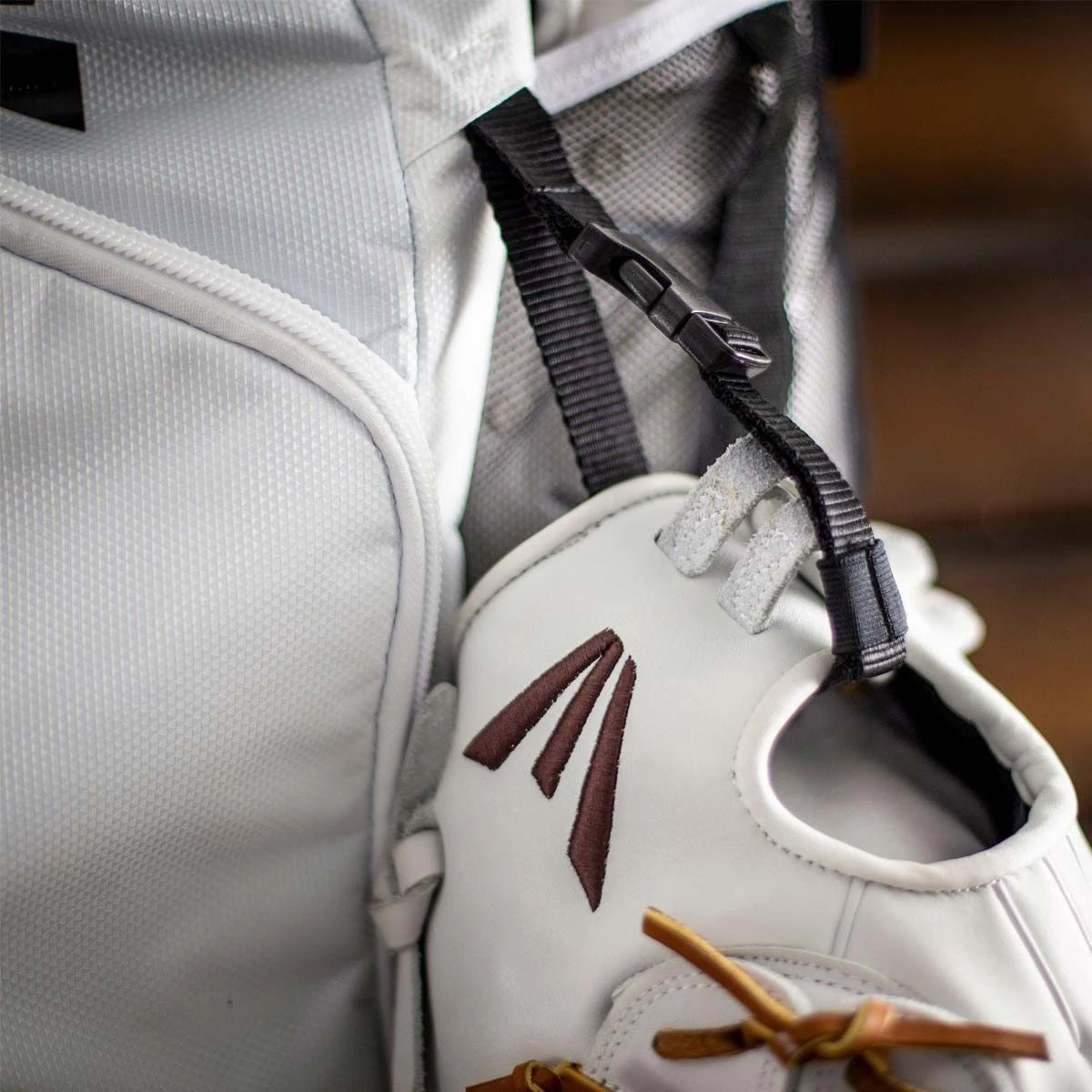 Easton’s E700CBP Jen Schro catcher’s backpack was built to hold all of your catcher’s gear and necessities for a day at the field. This backpack features a large vented main compartment to fit a full set of catcher’s gear, an interior shelf to keep gear organized, as well as a separate vented shoe compartment. The bag also features fastpitch catching star Jen Schroβs inspirational messaging throughout the interior lining and Easton X Jen Schro Catching lockup on the outside. Side mesh sleeves hold leg guards when in tow, and can be folded and secured out of the way when not in use. The external strap and buckle on the front are ideal for attaching your ball glove or batting helmet. Since we know you’re so much more than just a catcher, this bag also features two fully-lined bat sleeves.