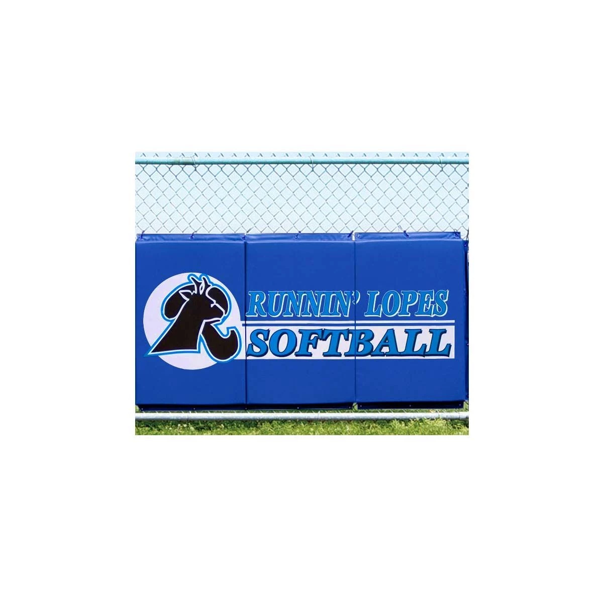 The Cover Sports 3’H x 6’L backstop padding with graphics is constructed of heavy-dutyΒ 18 oz. outdoor vinyl and Β 2″ poly foam padding to protect players when they are catching ball on the fly. The backstop pads are digitally printed, giving you unlimited design and color options β simply email your artwork to [emailΒ protected] or call if you need help. The padding folds in 2′ sections for easy storage.Β Β When mounted toΒ chain-link, woodΒ or cement backstops,Β this paddingΒ providesΒ player protection and reduces ball bounce-back. Brass grommets are spaced 12″ apart on all four sides for easy attaching. Attachment hardware is NOT provided as each installation is unique. Your local hardware store should have any hardware you may need.