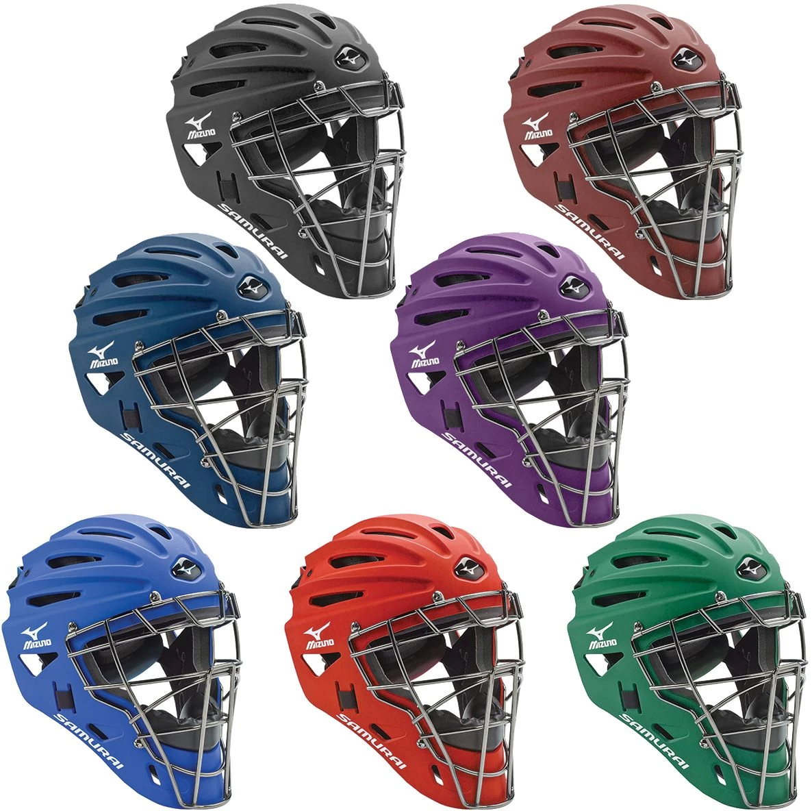 The Mizuno Samurai G4 catcher’s helmet is designed for durability, comfort and a lightweight performance. The strategic ventilation system provides comfort and breathability while the 3 layer EVA foam padding provides protection. The Samurai G4 features a strong steel framed face guard for maximum protection and durability and an adjustable jaw pad provides moisture control and a soft feel.