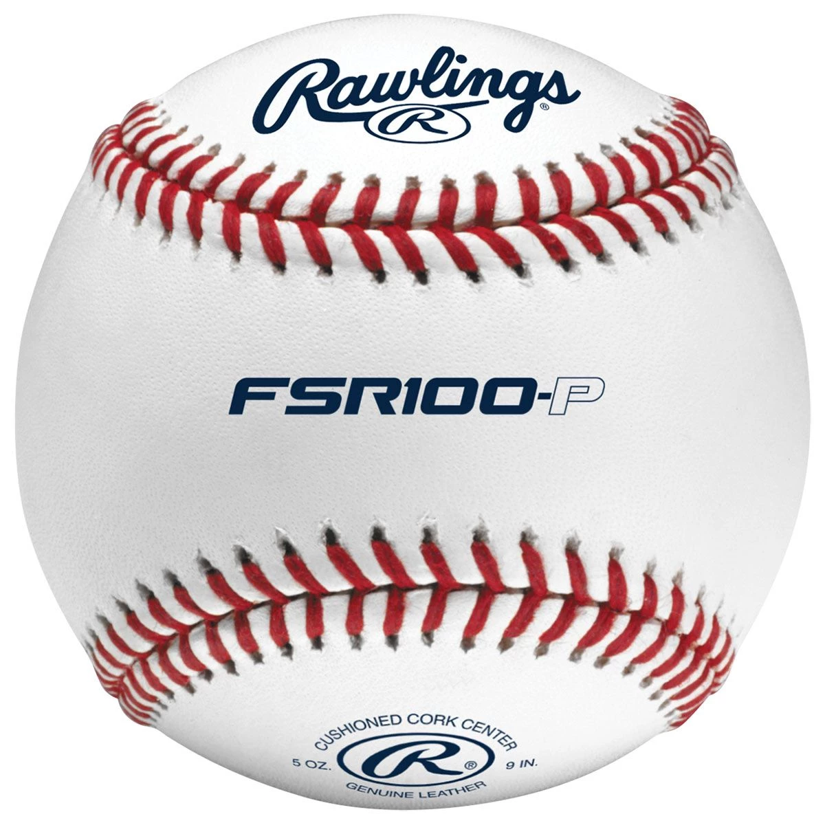 The Rawlings FSR100-P baseball is one of the game’s most premium practice balls for the high school and college level, featuring a full-grain leather shell for extra durability and a flat seam design that offers an improved grip and flies farther than raised seam baseballs. This ball also features a cushioned cork center, standard windings, and a Core Bandยฎ Adhesive.