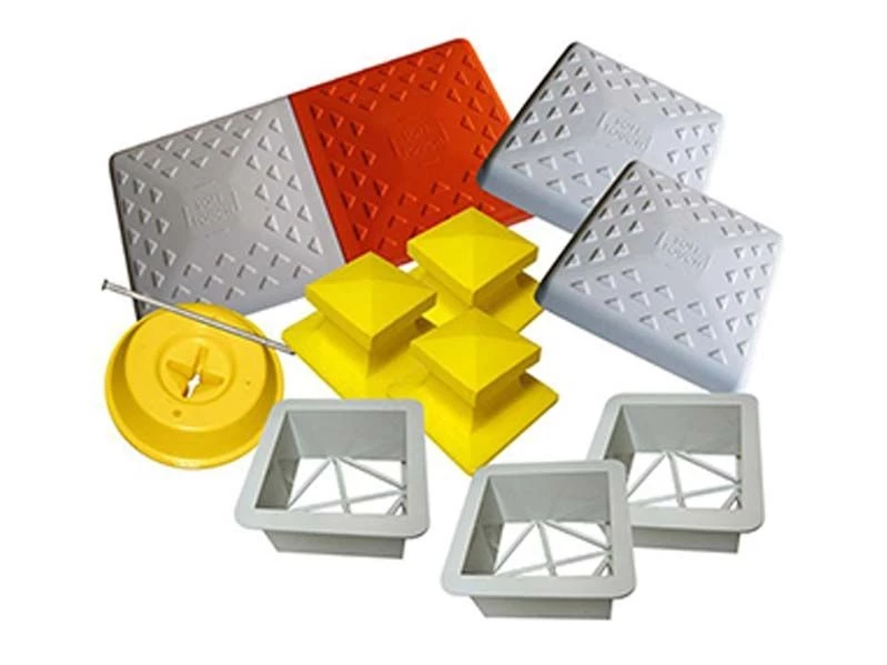 - Set includes (2) A Series bases, (1) A Series double first base, (3) 7″ plastic ground anchors, (3) tapered plugs, (1) 12β spike, (1) spike-down disk