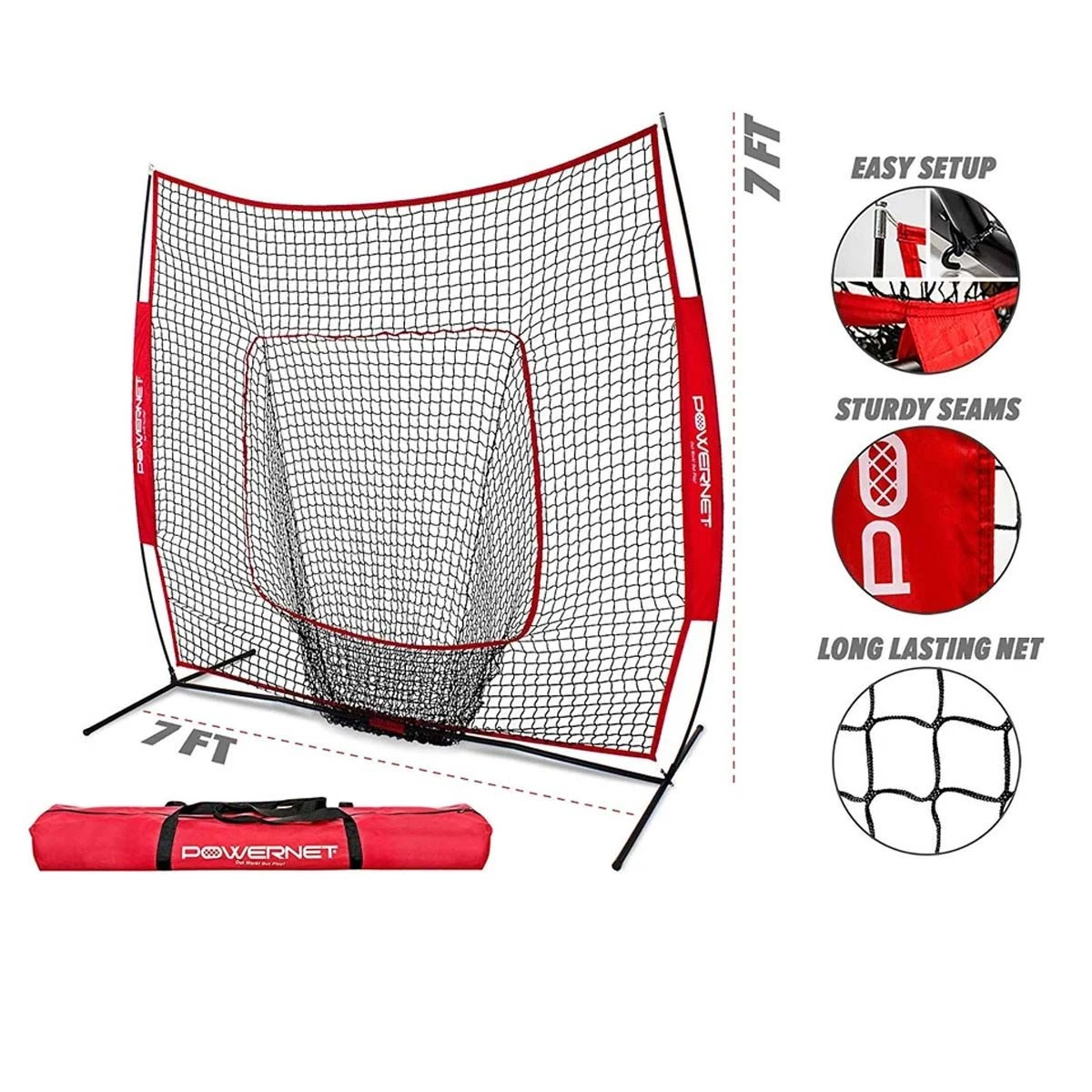 The POWERNET 7′ x 7′ Original Pop Up Hitting Net is a vital piece of baseball and softball training equipment! The frame and net sets up in just 2 minutes, allowing you to start training immediately. The Original Hitting Net is perfect for practice hitting, fielding, pitching, soft toss and batting tee work.The included red target sock fits in the center of the net and is ideal for pitching accuracy training. This pop-up hitting net fits conveniently in the included carry bag for easy transport.