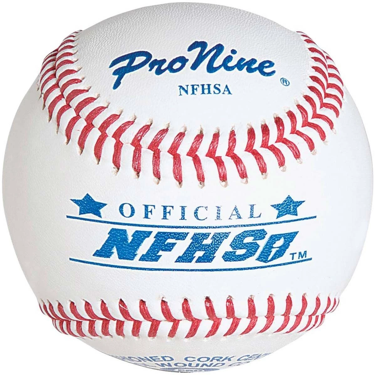 Pro Nine official NFHS high school baseballs are very durable, competition grade baseballs certified for high school play. Β These baseballs have a full grain leather cover for added durability, raised seams for improved grip, and a premium wool-wound cushioned-cork center so the ball does not lose it’s shape.
