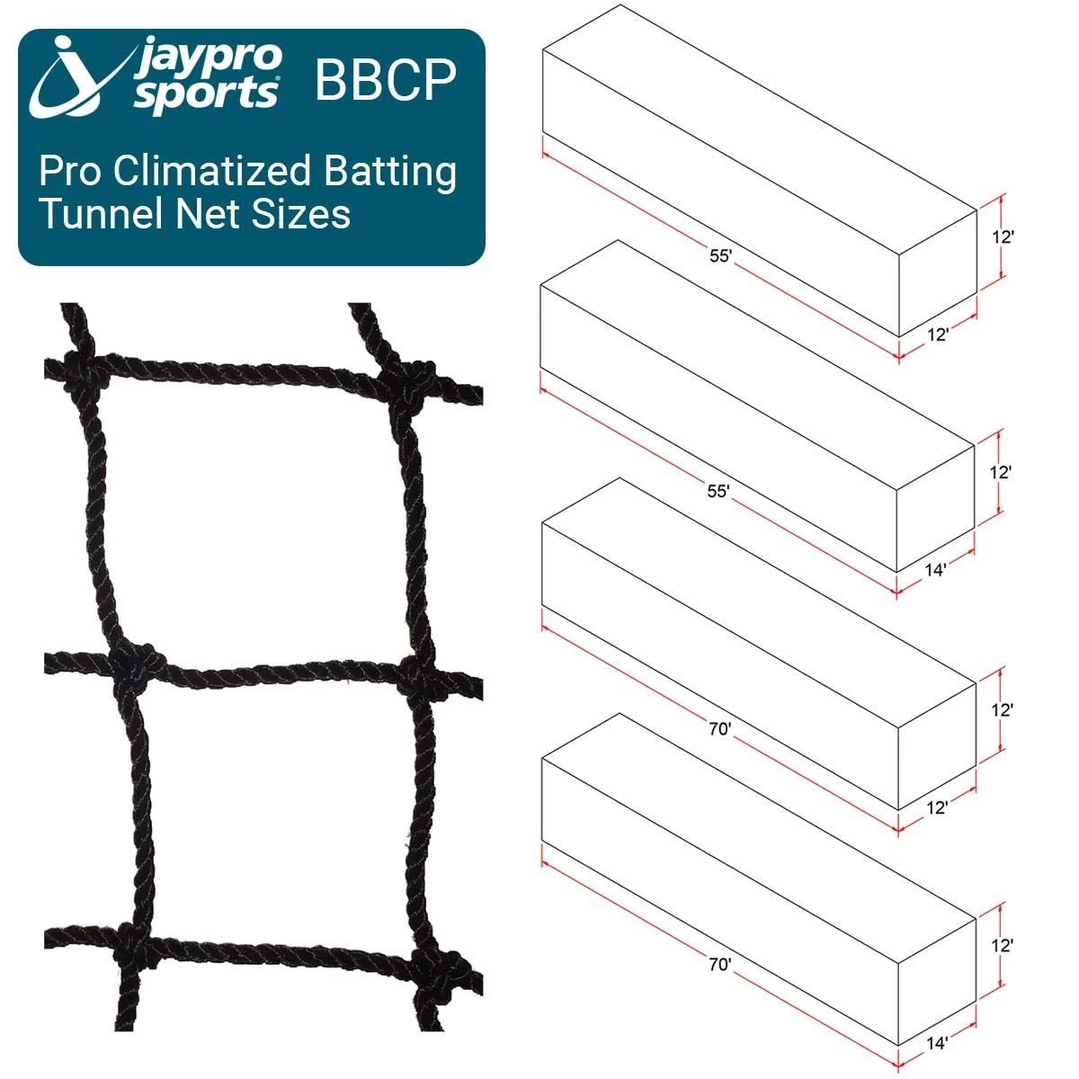 Complete your batting cage with Jaypro’s Pro Climatized batting tunnel net. The Pro Climatized net is constructed of #42 thread count, 1-3/4″ square nylon mesh that is twisted and knotted for extra durability. The perimeters and corners of the net are sewn together and bound to a polypropylene rope to prevent fraying. Perfect for outdoor use, the Pro Climatized net is weather resistant and UV protected to prevent fading from the sun. This lightweight, yet durable net is comprised of high tenacity nylon fibers that are resistant to abrasion. This batting tunnel net is sized large enough to allow approximately 1 foot of netting to lay on the ground when the cage is in use. The Pro Climatized batting cage net is backed by a 1 year limited warranty.