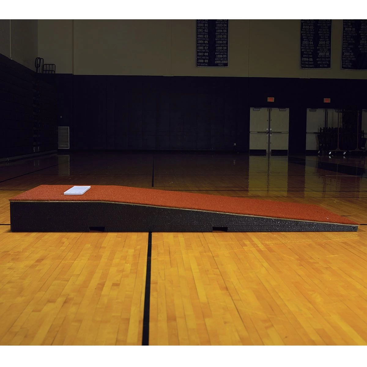 The Promounds clay-colored Collegiate portable pitching mound is constructedΒ of high density foam, rubberized armor and spike-resistant turf making it extremely durable.Β The rubber armor is skid proof and will not damage any gym floors. The combination of the foam core and the rubber armor distinguishes this pitching mound as the most durable and lightweight models on the market today. This indoor portable pitching mound is ideal for off-season training in the gym.