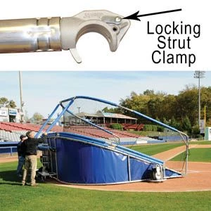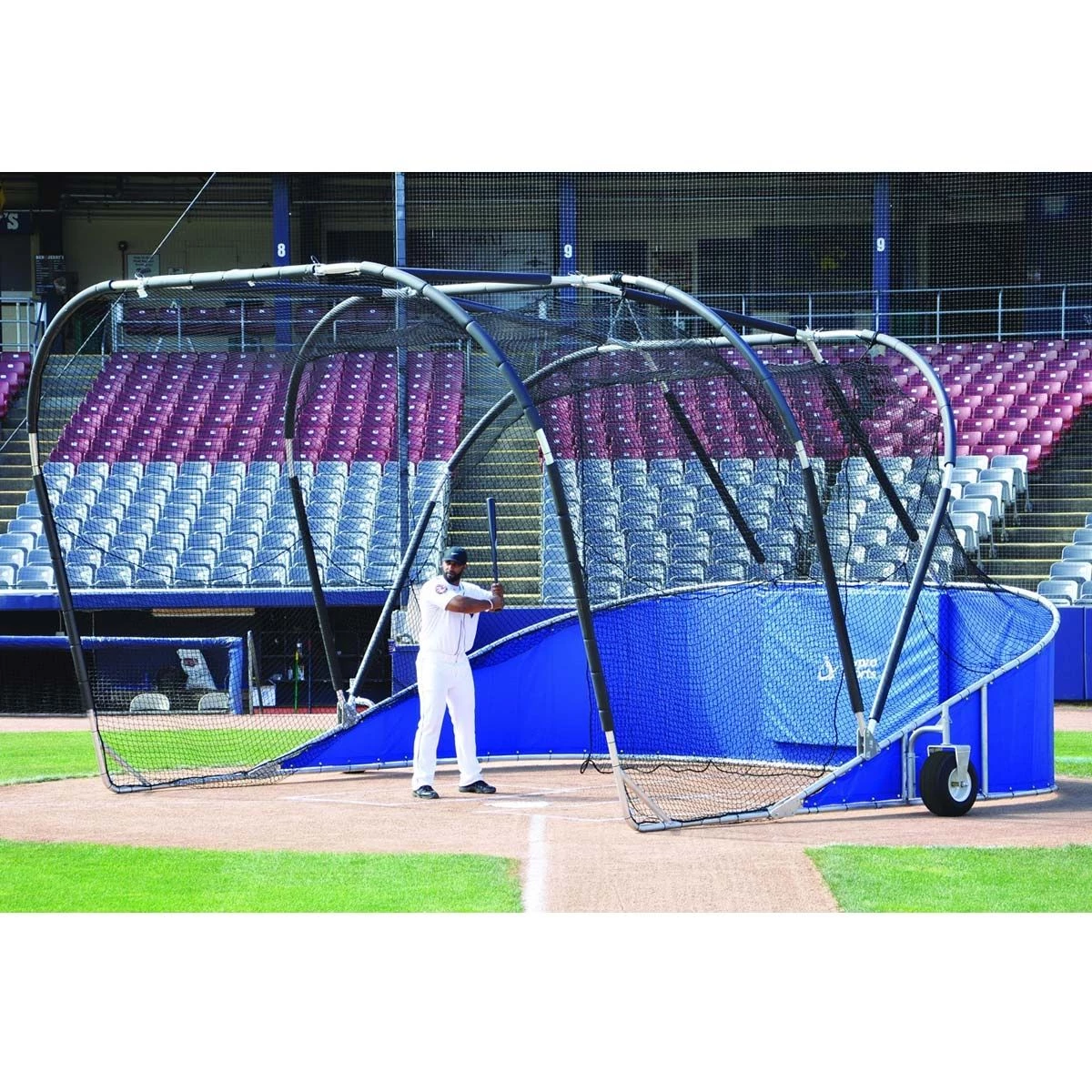 The Big League Bomber Elite, portable batting cage from Jaypro is ideal for elite programs at all levels of play. This cage has a professional look and is loaded with features including a sturdy 2″ frame that is easy to assemble, set-up and move. The Big League is constructed of heavy-duty aluminum tubing and features a black, climatized nylon net with rear net baffle and a thick thud pad for extended net life. The Bomber Elite also includes a vinyl skirt in your choice of color and ricochet padding on all overhead framing (black only). The frame includes a dual coaches’ stand with leaning bar that also serves as a convenient strut holder. The cage frame includes Jaypro’s exclusive locking quick release safety strut clamps that prevent inadvertent and dangerous release. Swivel side wheels can lock into position.