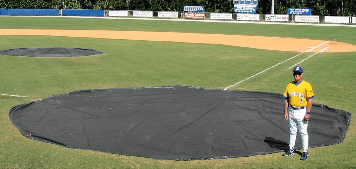 The Aer-Flo WWV1812, 12′ diameter wind weighted mound/homebase tarp weighs 32 lbs and stays put without stakes or sand bags! A steel chain is sewn into the edge hem all around the cover to keep the wind from getting under. These tarps are proven to stay down in winds over 65 miles per hour. Expertly constructed of heavy duty 18oz, UV protected vinyl that will last season after season! Save time by eliminating the need for stakes and sandbags.