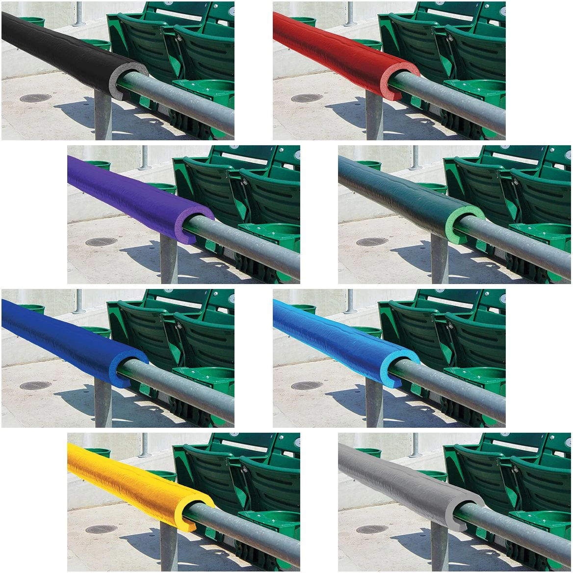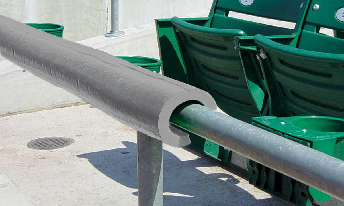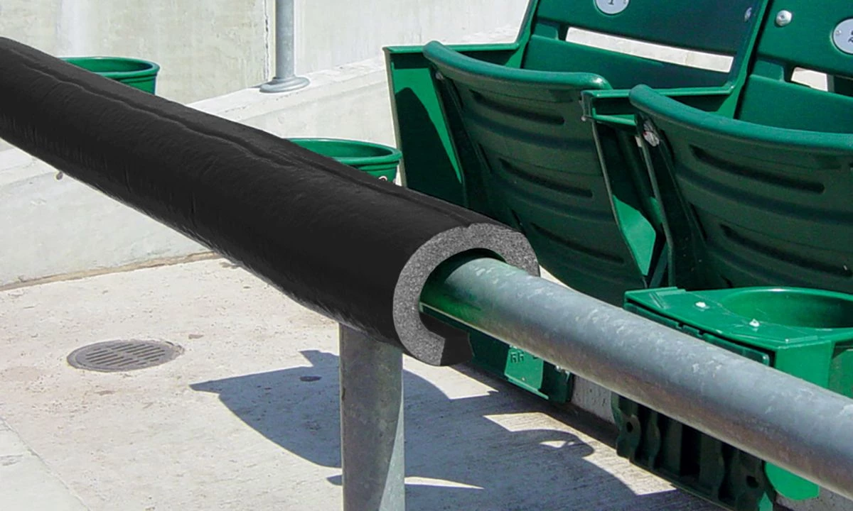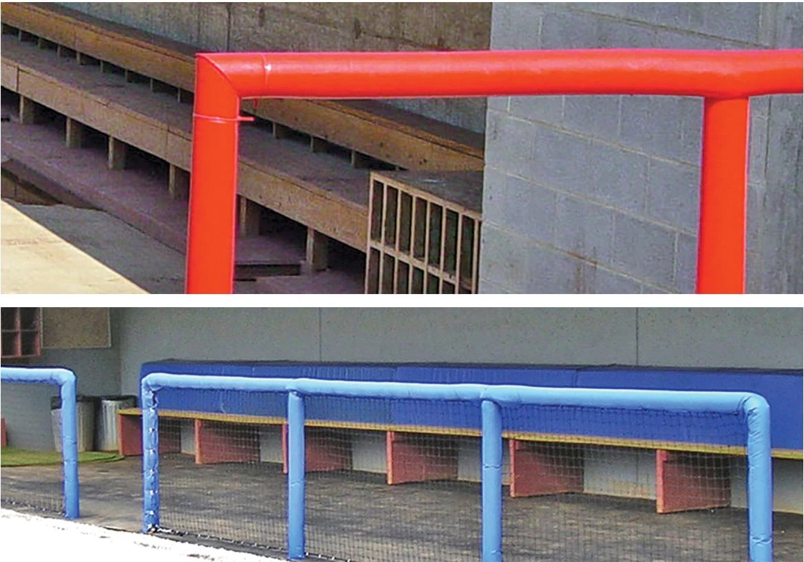 Protect your players and give your field that professional look with Premium SafeFoam padding. This foam padding is so versatile it can be used virtually anywhere around your field! Use the Premium SafeFoam padding as a batting cage deflector, pitching L-screen deflector or for your dugout rails. This foam padding goes over any chain link fence top, pole or rail 2β or less in diameter. The padding is ΒΎβ thick with an extra-durable skin coating. The 8′ long pieces areΒ pre-slit for easy installation and can be easily cut down to fit any application.