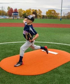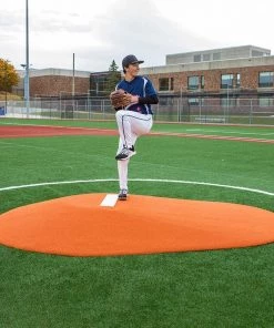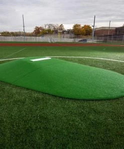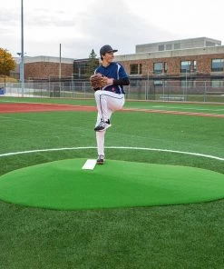 The Proper Pitch game mound is perfect for indoor and outdoor use. This artificial turf pitching mound has a non-slip, non-marking rubber backing and features a lightweight, high-strength construction. The shock absorbing landing area reduces the risk of arm injuries.