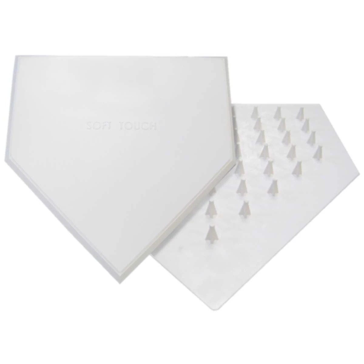 The Soft Touch T-Series home plate is ideal for synthetic turf fields because it is held in place without the use of anchors. There is no mounting system necessary which makes it easy to install and the polyurethane “spikes” hold the home plate in place. Significant pressure will release the home plate for safety.