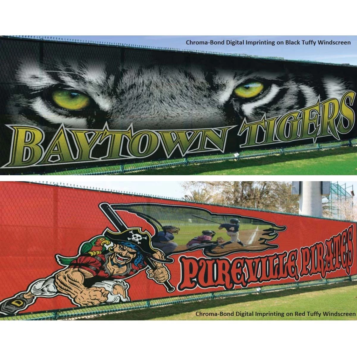 The Aer-Flo TWS9 Tuffy windscreen measures 9′ in height and is made with Aer-Flo’s exclusive Vipolโข Matrix material, a virtually tear-proof, super-durable mesh fabric comprised of tightly woven micro-fibers. Tuffy is the only windscreen finished with double-needle lock stitching, eliminating unraveling thread of traditional windscreens that are fully chain-stitched. The Tuffy privacy windscreen features all around edging with high-quality grommets that are installed every 12โ inches. The Tuffy windscreen allows 22% wind pass-through with a shade factor of 78%. Give your Tuffy windscreen a professional look and enhance you team’s brand with sharp multi-color imprinting. This custom artwork is available via Aer-Flo’s Chroma-Bondยฎ imprinting process that produces thousands of sharp multi-color images for teams at all levels. Also offered is Aer-Flo’s new state-of-the-art Chroma-Bondยฎ digital imprinting that produces vivid, finely detailed images that are highly resistant to UV sunlight and abrasion. The Aer-Flo TWS9 9 ft. high Tuffy windscreen is backed by a 5-year factory warranty.
