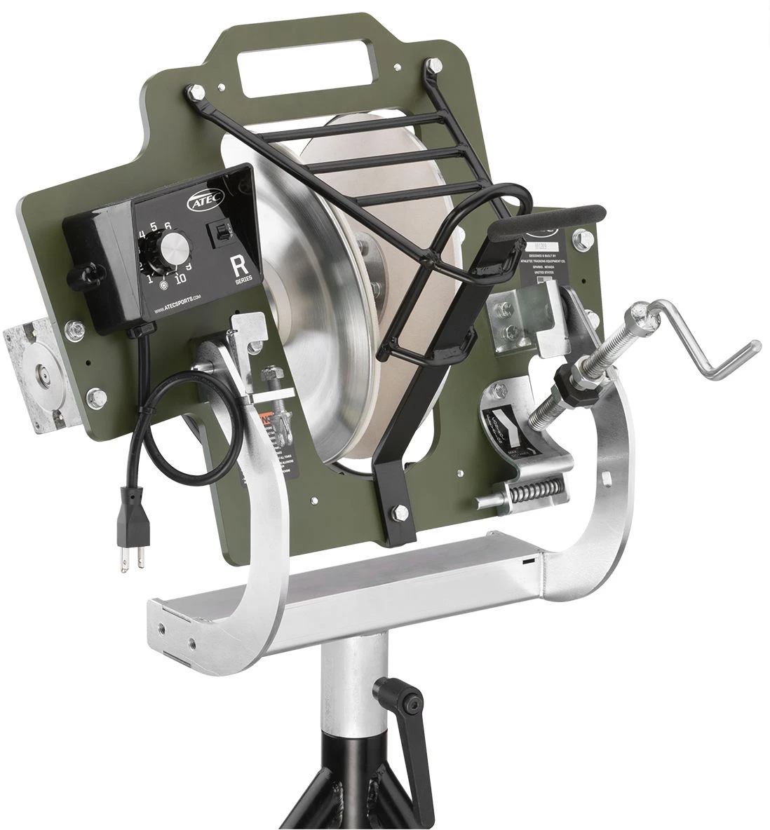 The R2, formerly the Rookie, is built for defensive training at the collegiate level. It is designed to be a more compact and portable version of the Atec’s professional level R3 machine. Both R-Series machines have the unique ability to rotate and pivot freely while the machine is on and in use, allowing you to challenge multiple fielders, playing different positions, one after another. Just like the R3, the R2 also allows you to achieve the maximum number repetitions for any defensive drill, giving your players more quality repetitions than could possibly be achieved with a fungo bat. The R2 is compatible for use with regulation leather baseballs as well as dimple and foam machine baseballs. A Full Control Fungo System (FCFS) maximizes your ball placement and control. The R2’s Hi.Per aluminum discs work to decrease recovery time for maximum repetitions. A high definition ball chute provides players a clear and uninterrupted view of the ball. The R2 is also equipped with a caddypod wheeled transport system that makes set up and transitioning between drills quick and easy.