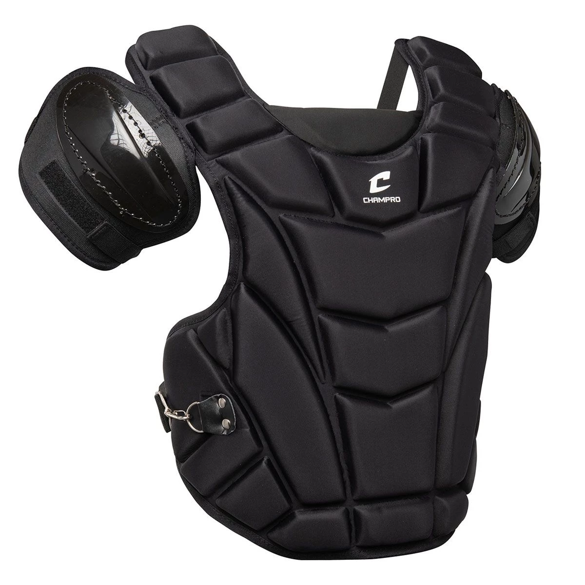 The MVP umpire chest protector from Champro sports a durable compression-molded design to absorb energy from the toughest impacts behind the plate. Properly protect your shoulders and chest with the integrated armor-plated shoulder pads and the abrasion-resistant braided nylon binding. No matter what weather conditions you find yourself in, you can ensure the MVP chest protector wonβt rust thanks to the nickel plated steel hardware.