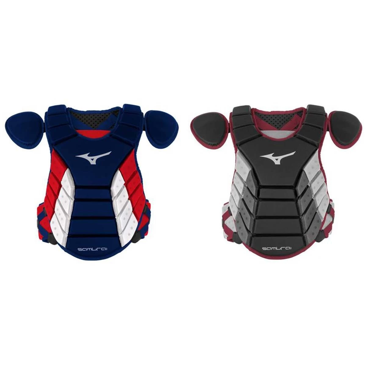 The Samurai NOCSAE chest protector from Mizuno is SEI certified meeting commotio cordis chest protector standards. This baseball chest protector features low rebound foam with a grippy surface design that helps to keep blocked balls in front of you. The Samurai is also equipped with a personalized nameplate area allowing you to write the player’s name for a customized touch.