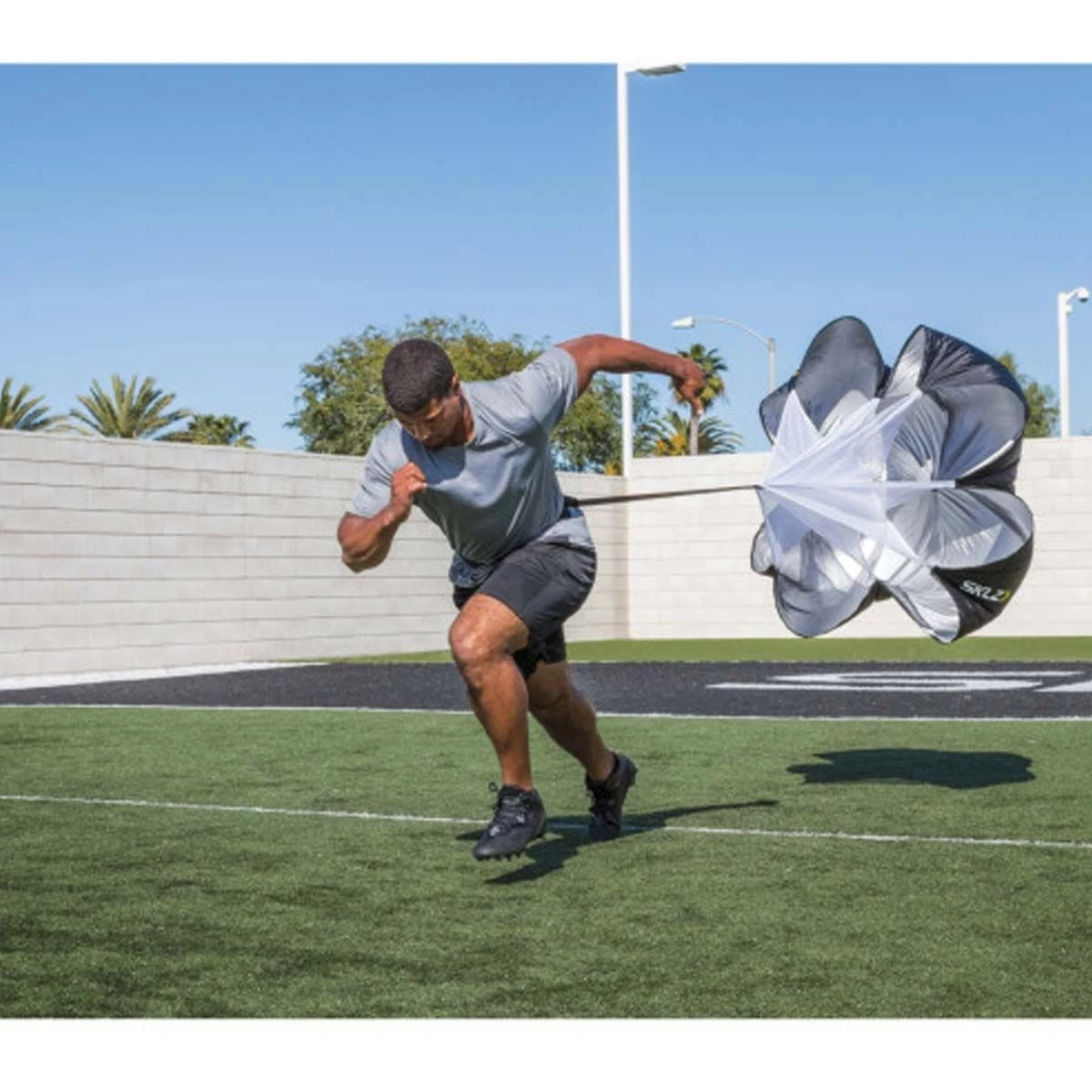 The SKLZ Speed Chute allows you to focus on acceleration and top end speed through progressive resistance and overspeed training. The Speed Chute features a quick-release buckle for that mid-stride, βshot-out-of-the-cannonβ sensation.