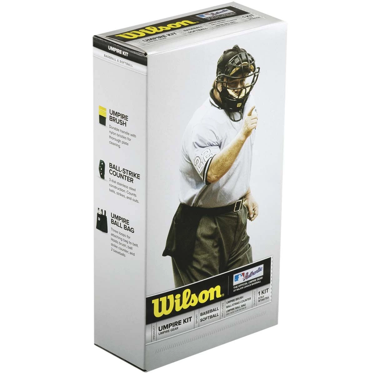 The Wilson WTA6754 Umpire Kit includes everything an umpire needs to call a game behind the plate. The kit comes with a home plate brush, an indicator for balls, strikes, and outs and a ball bag with belt loops,