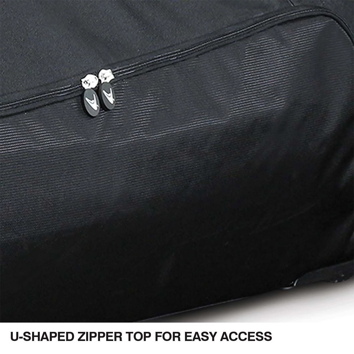 The Champro Jumbo is an all-purpose wheeled bag, offered in a large 36″L x 16″W x 18″H size to carry everything you need for the game. The Jumbo equipment bag features a tough 600D polyester fabric construction. A “U” shaped zipper top allows for easy access to your gear. The Jumbo is also equipped with an extra large removable side pocket that has a 10″ x 30″ screenable area for your team’s logo. The Jumbo’s heavy-duty wheel system allows you to roll the bag over any surface and two built-in end handles allow for easy lifting.
