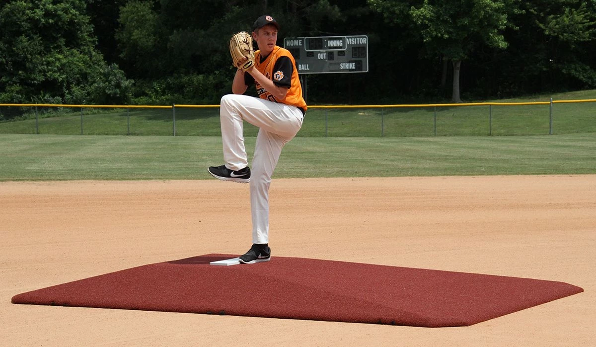 The Proper Pitch 10″H x 11’6″L x 8’3″W tapered game mound is computer designed to meet regulation specifications. This mound can withstand indoor or outdoor use and is made with a durable yet lightweight construction. The turf covering is safe for cleats. The 3/4″ lip means there is no need build up dirt around the mound and it is ready for immediate use.